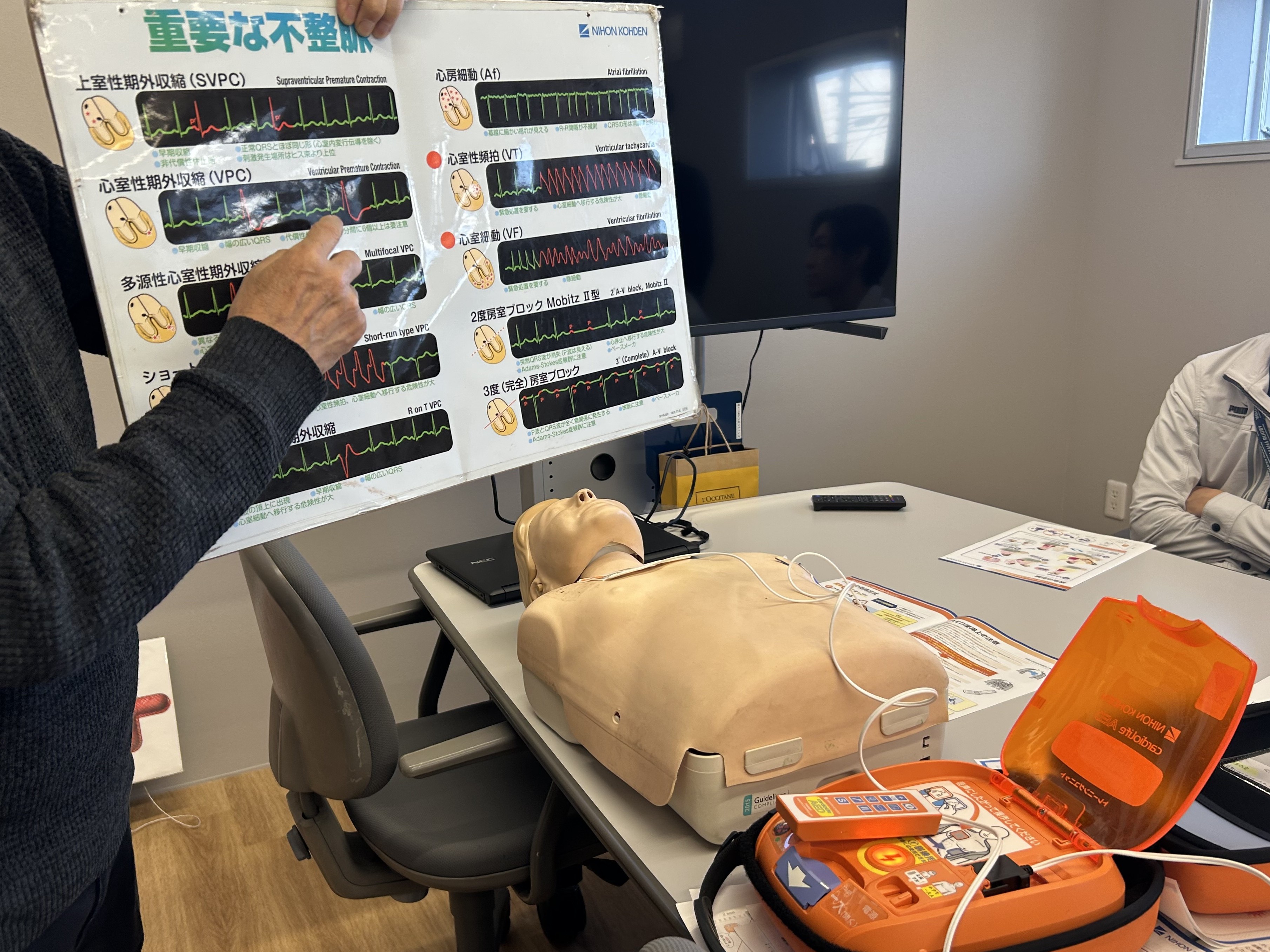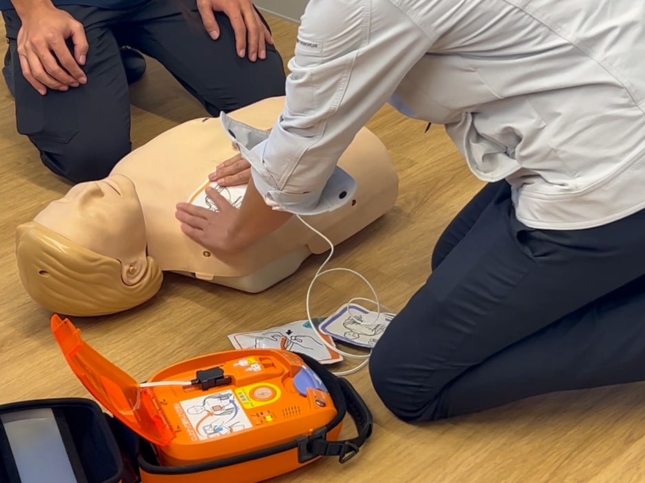 掛川営業所・磐田営業所にAEDを設置しました AED設置に伴い、10/23(掛川営業所)、30(磐田営業所)にて救命救急講習会を行いました。 心停止傷病者に対する救命の流れとAEDの使用方法や胸骨圧迫方法などを学び、救命実技体験をしました。 救命救急講習は学校や自動車学校で受けたことが多いと思いますが、 今回の講習を受けて、いつ自分がAEDを使用する状況になった時も対応できるように 定期的に安全意識を高める機会を持つことの大切さを実感しました。
